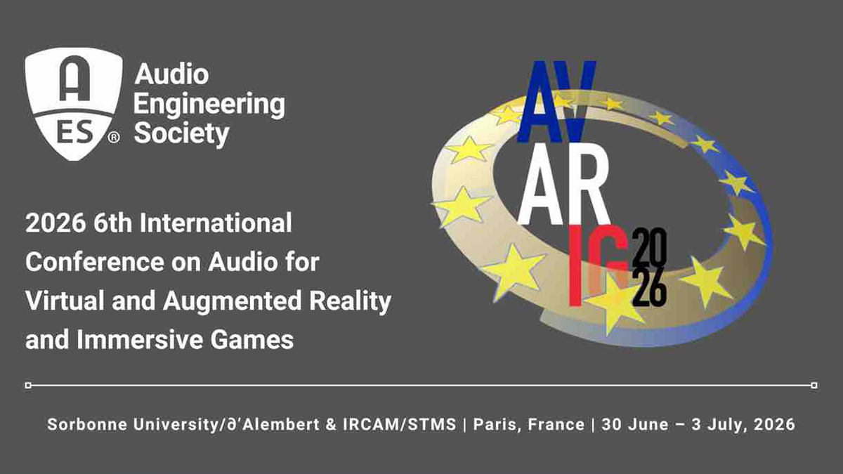 New York, NY — The Audio Engineering Society (AES) has announced its International Conference on Audio for Virtual and Augmented Reality and Immersive Games (AVARIG2026), taking place June 30 through July 3, 2026, at Sorbonne University/d’Alembert and IRCAM/STMS in Paris, France.